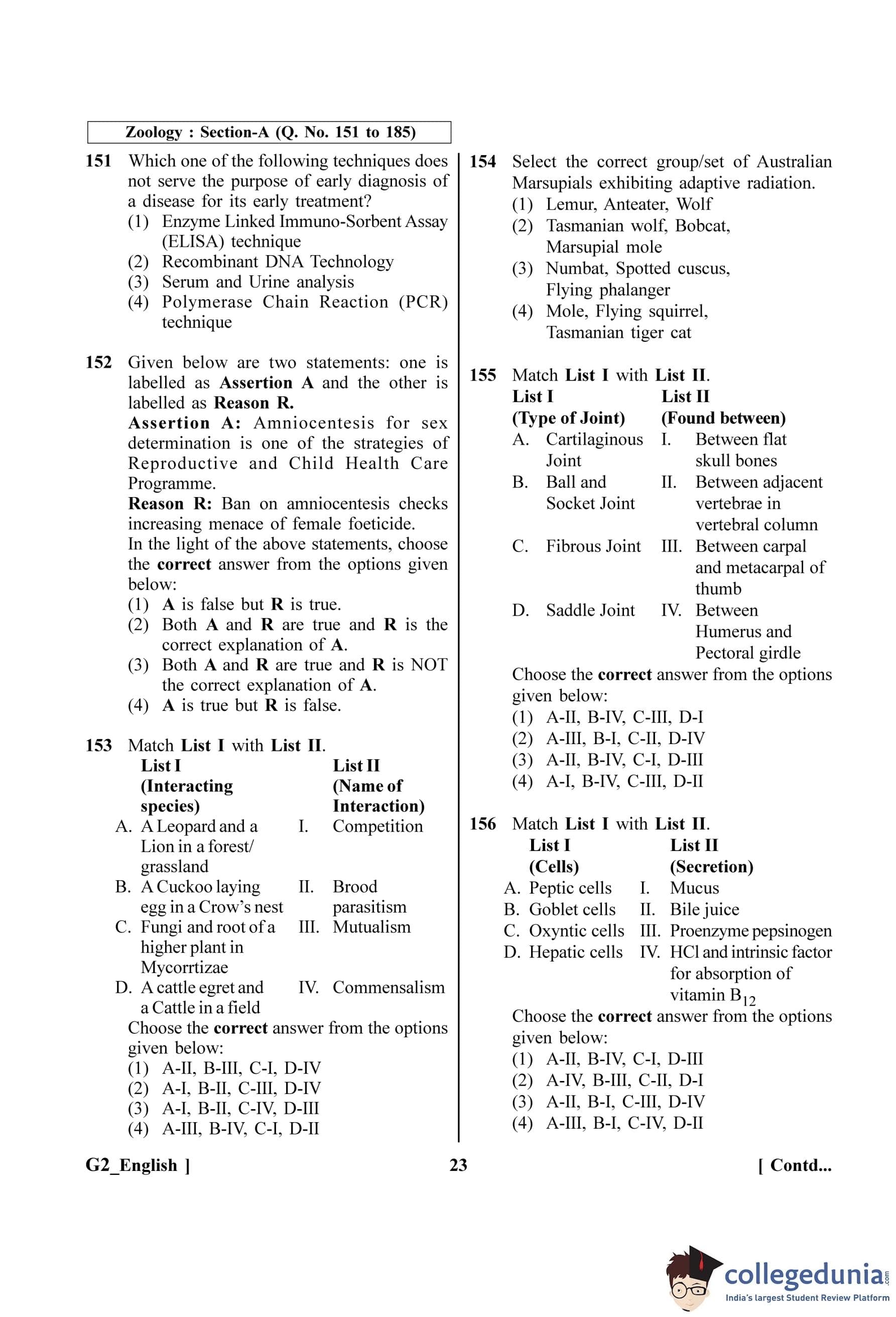 | NEET 2023 Zoology G2 Question Paper with Solutions PDF | Download PDF | Check Solutions |