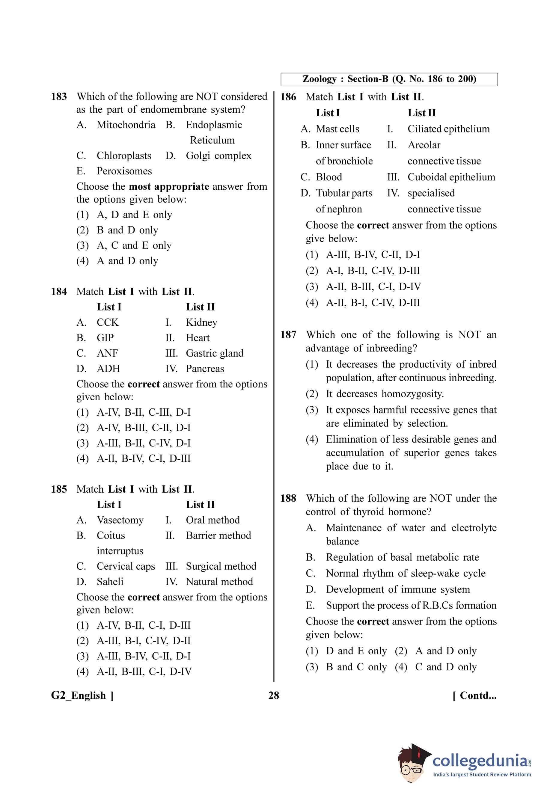 NEET 2023 Zoology Question Paper with Solutions PDF G2 is available for download. NEET 2023 G2 Zoology Question Paper comprises 50 MCQs out of which only 45 are to be attempted. NEET 2023 question G2 Zoology is divided into 2 sections- A (35 questions) and B (15 questions).