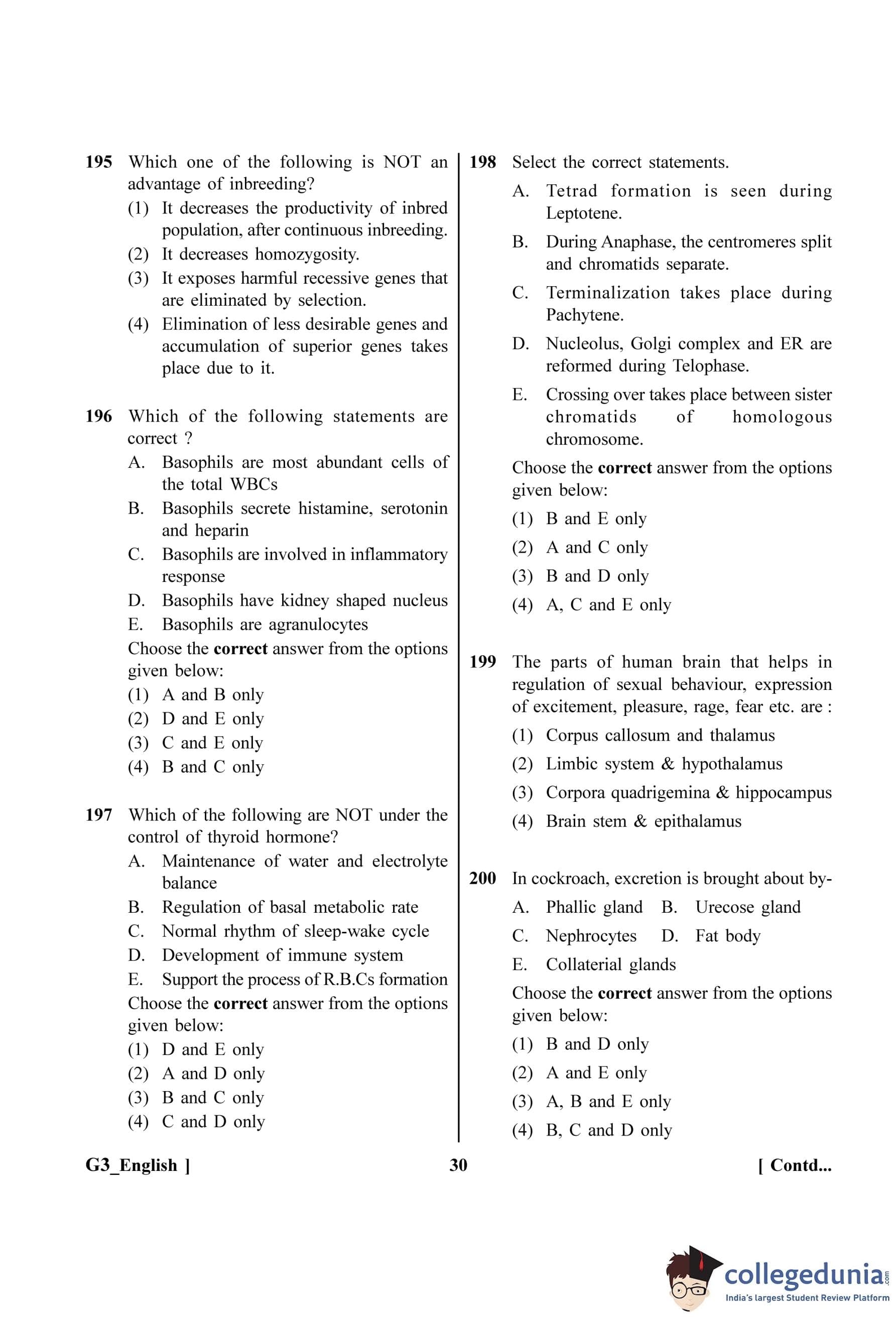 | NEET 2023 Zoology G3 Question Paper with Solutions PDF | Download PDF | Check Solutions |