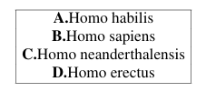 Given below are some stages of human evolution. Arrange them in correct sequence (Past to Recent).