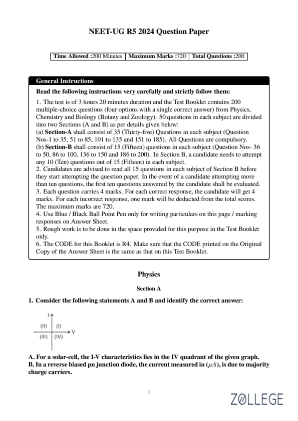 | NEET 2024 R5 Question Paper with Answer Key | Check Solution |