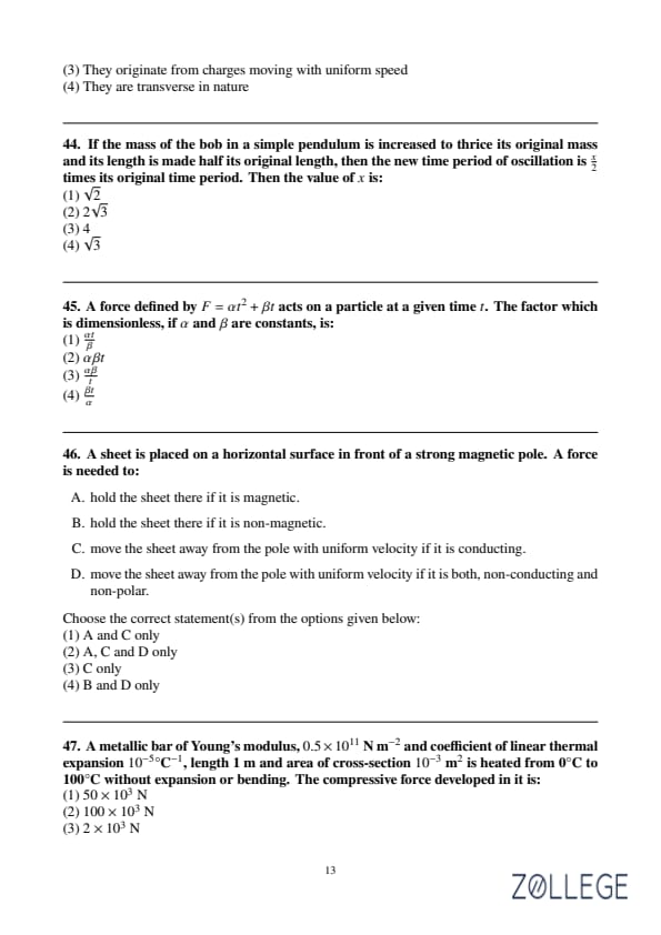 [D.] move the sheet away from the pole with uniform velocity if it is both, non-conducting and non-polar. Choose the correct statement(s) from the options given below: