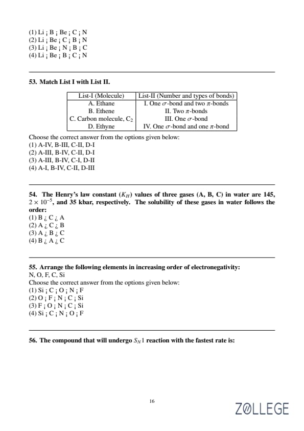 Arrange the following elements in increasing order of electronegativity: N, O, F, C, Si Choose the correct answer from the options given below:
