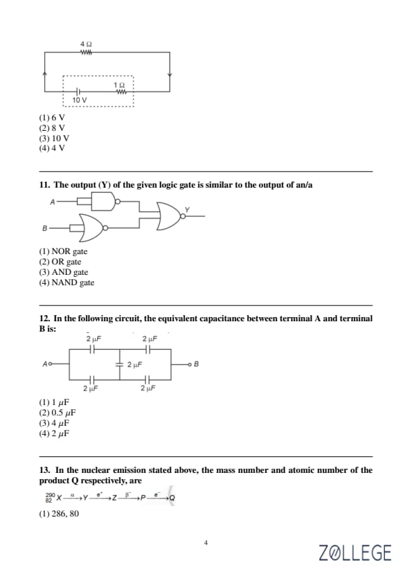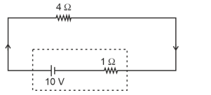 The terminal voltage of the battery, whose emf is 10 V and internal resistance \( 1 \Omega \), when connected through an external resistance of \( 4 \Omega \) as shown in the figure is: