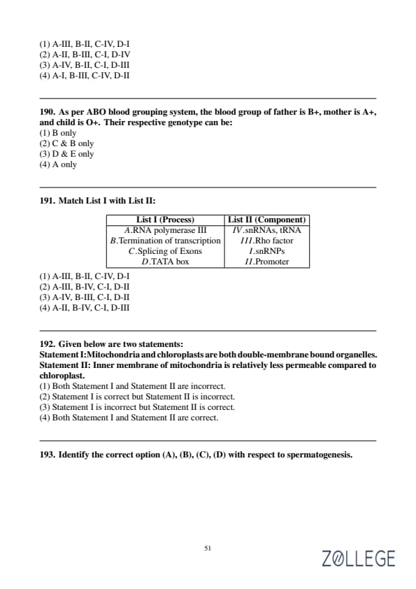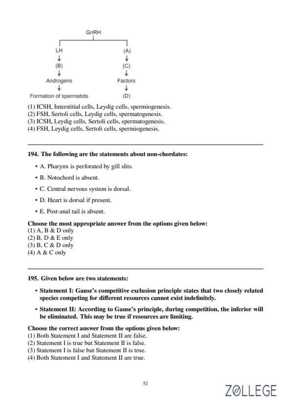 Identify the correct option (A), (B), (C), (D) with respect to spermatogenesis.
