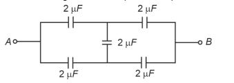 In the following circuit, the equivalent capacitance between terminal A and terminal B is: