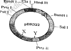 The following diagram shows restriction sites in E. coli cloning vector pBR322. Find the role of ‘X’ and ‘Y’ genes: