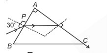 A light ray enters through a right-angled prism at point \( P \) with the angle of incidence \( 30^\circ \) as shown in the figure. It travels through the prism parallel to its base \( BC \) and emerges along the face \( AC \). The refractive index of the prism is: