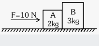 A horizontal force of 10 N is applied to a block A. The masses of blocks A and B are 2 kg and 3 kg respectively. The blocks slide over a frictionless surface. The force exerted by block A on block B is: