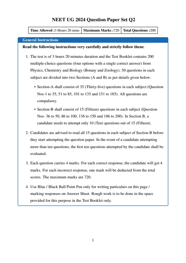 - Download NEET 2024 Question Paper for all Shifts