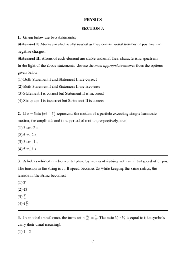 NEET 2024 Question Paper with Answer Key PDF Q2 in English