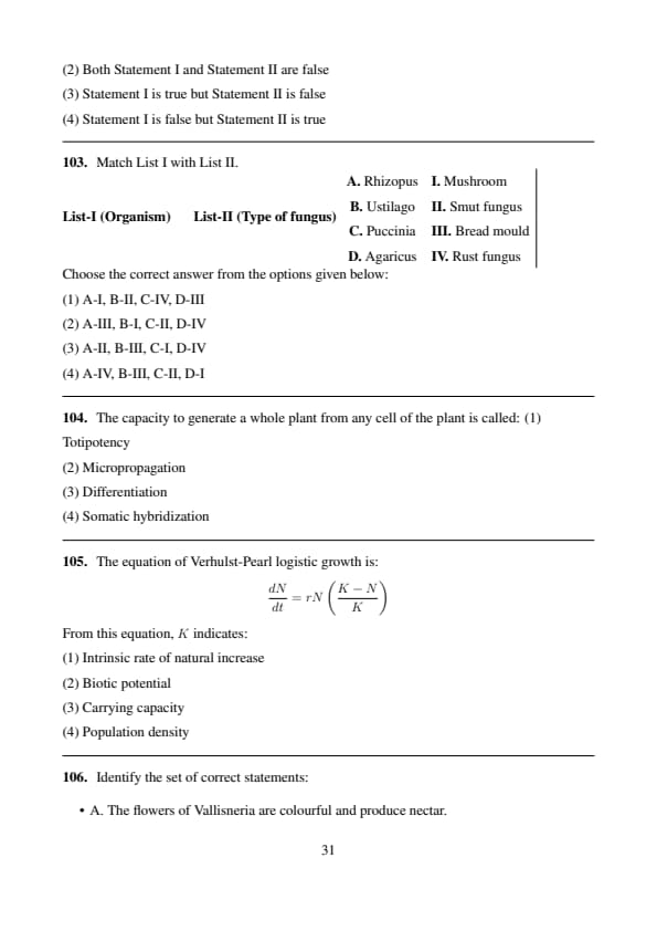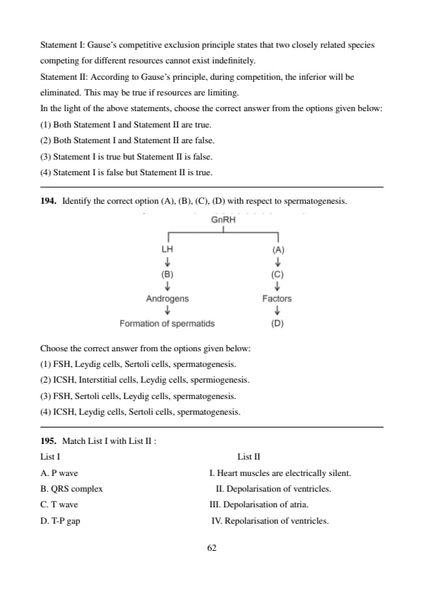 Statement II: According to Gause's principle, during competition, the inferior will be eliminated. This may be true if resources are limiting.