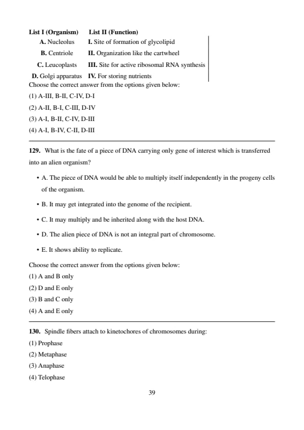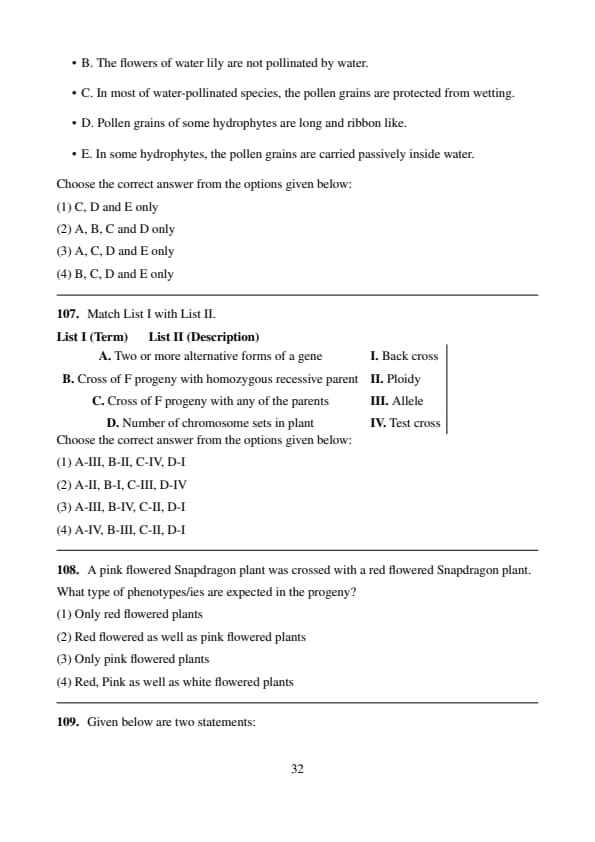 Correct Answer: (2) A, B, C and D only