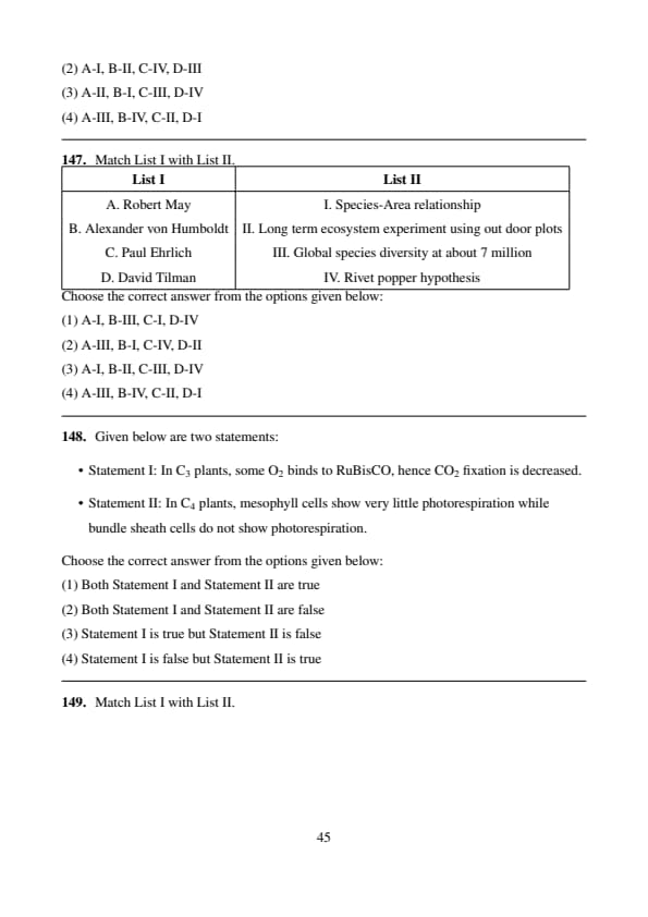 Statement I: In C3 plants, some O2 binds to RuBisCO, hence CO2 fixation is decreased.