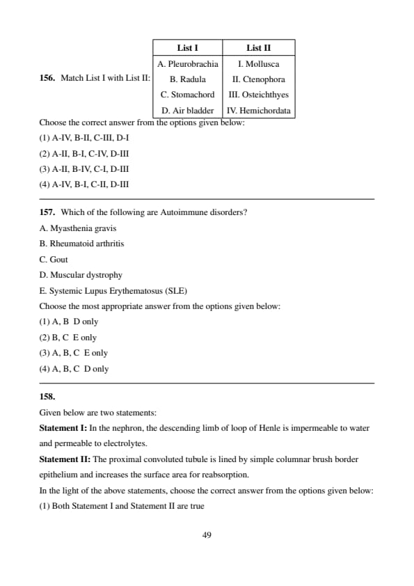 Statement I: In the nephron, the descending limb of the loop of Henle is impermeable to water and permeable to electrolytes.