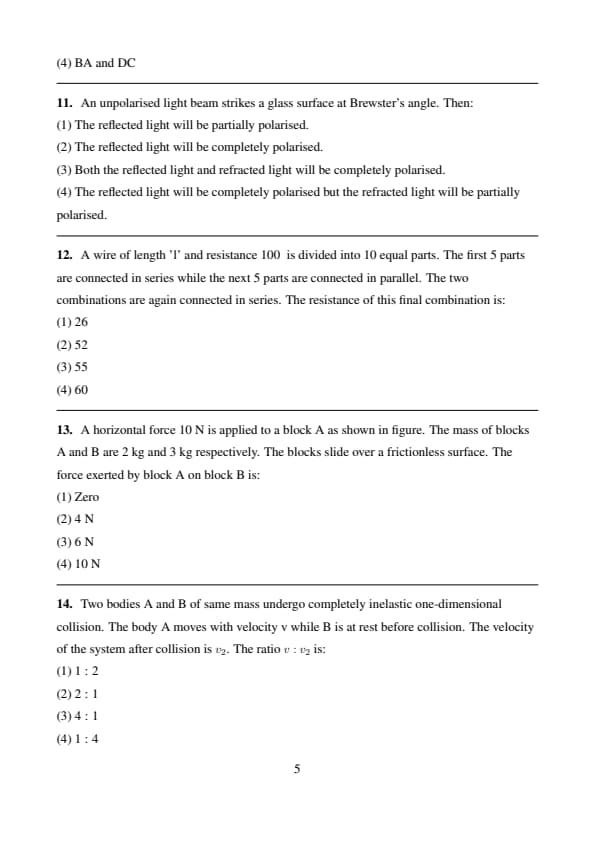 Correct Answer: (4) The reflected light will be completely polarised but the refracted light will be partially polarised.