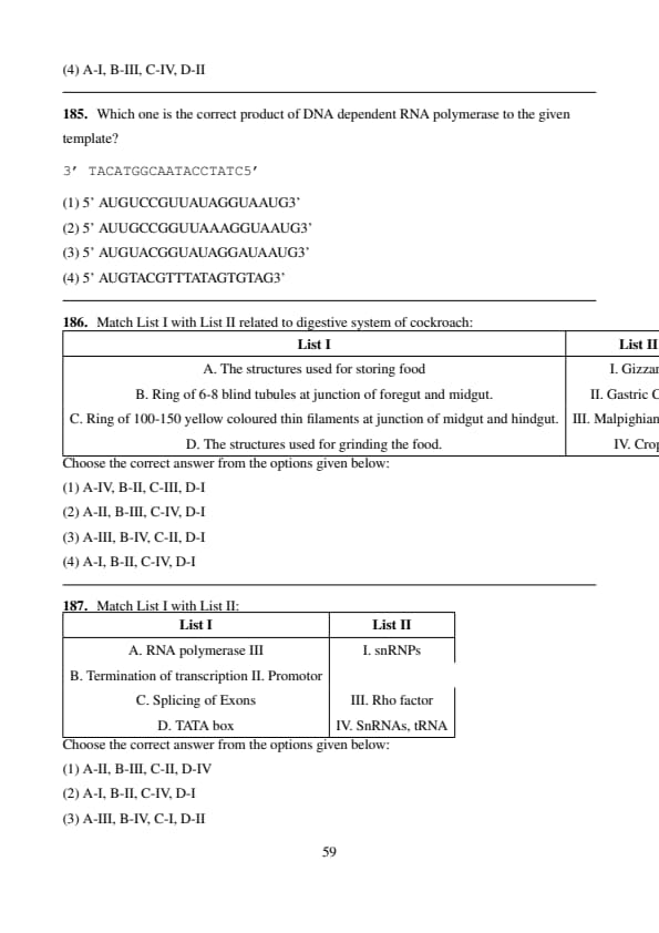 Which one is the correct product of DNA-dependent RNA polymerase to the given template?