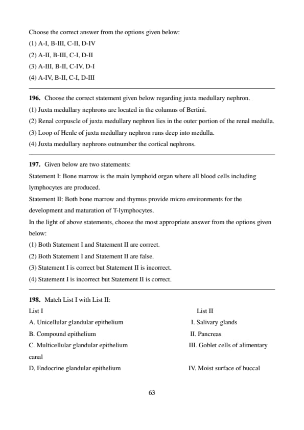 Statement I: Bone marrow is the main lymphoid organ where all blood cells including lymphocytes are produced.
