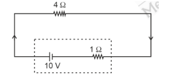 The terminal voltage of the battery, whose emf is 10 V and internal resistance 1 \(\Omega\), when connected through an external resistance of 4 \(\Omega\) as shown in the figure, is: