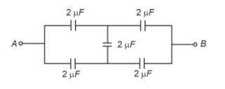 In the following circuit, the equivalent capacitance between terminal A and terminal B is: