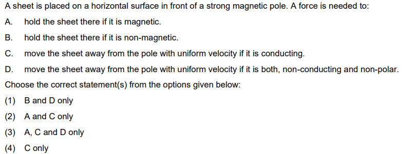 In the light of the above statements, choose the most appropriate answer from the options given below: