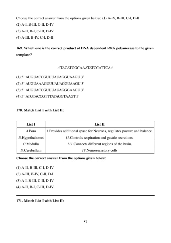 Which one is the correct product of DNA dependent RNA polymerase to the given template?