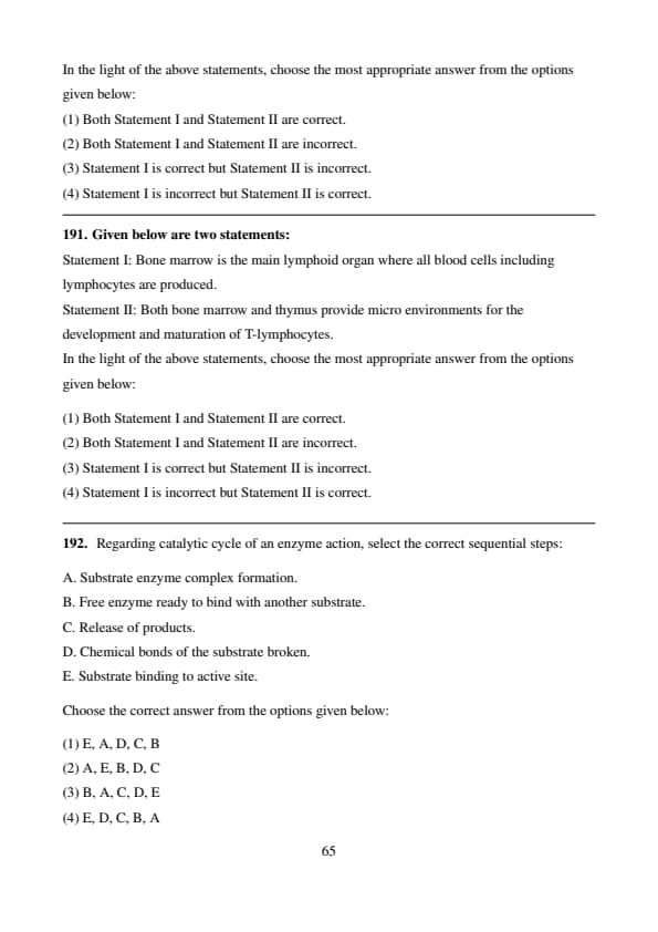 Statement I: Bone marrow is the main lymphoid organ where all blood cells, including lymphocytes, are produced.