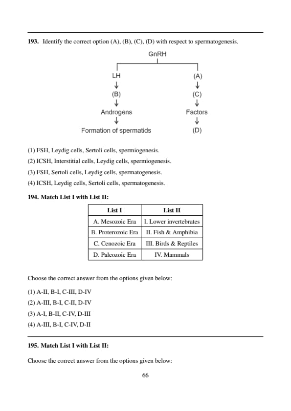 Identify the correct option (A), (B), (C), (D) with respect to spermatogenesis: