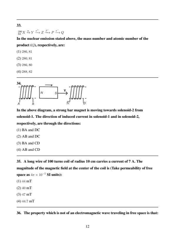 In the above diagram, a strong bar magnet is moving towards solenoid-2 from solenoid-1. The direction of induced current in solenoid-1 and in solenoid-2, respectively, are through the directions: