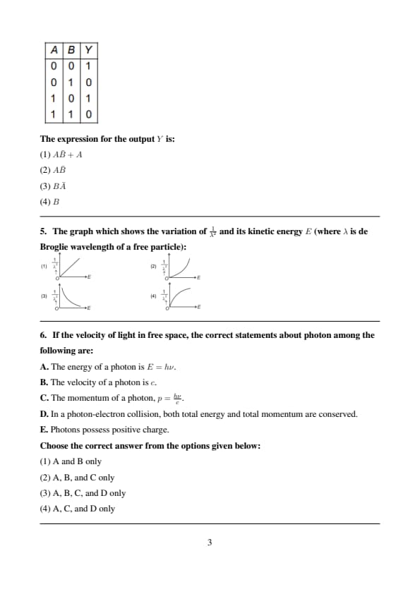 The graph which shows the variation of \( \frac{1}{\lambda^2} \) and its kinetic energy \( E \) (where \( \lambda \) is de Broglie wavelength of a free particle):