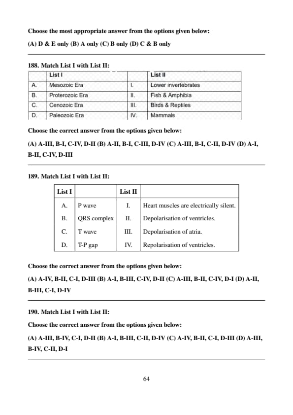 D. & T-P gap & IV. & Repolarisation of ventricles.