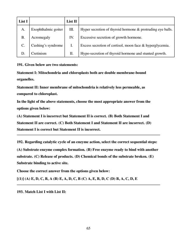 Statement II: Inner membrane of mitochondria is relatively less permeable, as compared to chloroplast.