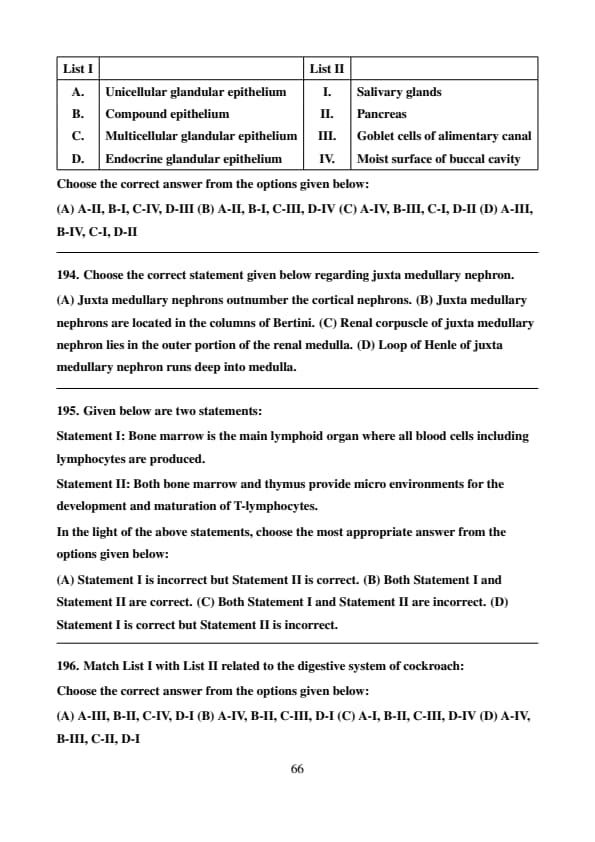 Statement I: Bone marrow is the main lymphoid organ where all blood cells including lymphocytes are produced.