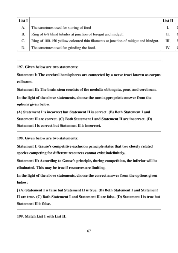 Statement I: Gause's competitive exclusion principle states that two closely related species competing for different resources cannot exist indefinitely.