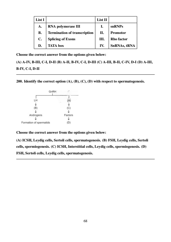 Identify the correct option (A), (B), (C), (D) with respect to spermatogenesis.