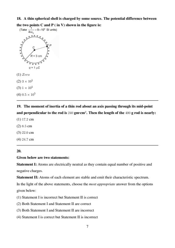 Statement I: Atoms are electrically neutral as they contain equal number of positive and negative charges.