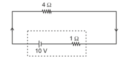 The terminal voltage of the battery, whose emf is 10 V and internal resistance 1 \(\Omega\), when connected through an external resistance of 4 \(\Omega\) as shown in the figure is: