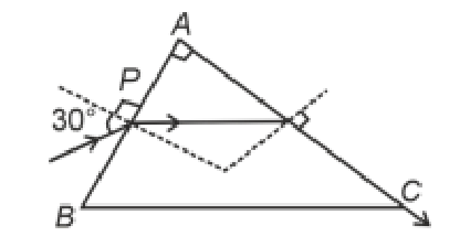 A light ray enters through a right-angled prism at point P with the angle of incidence 30° as shown. It travels through the prism parallel to its base BC and emerges along the face AC. The refractive index of the prism is: