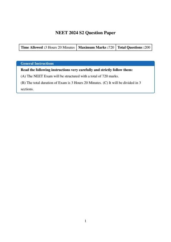 NEET 2024 Question Paper with Answer Key PDF S3 in English