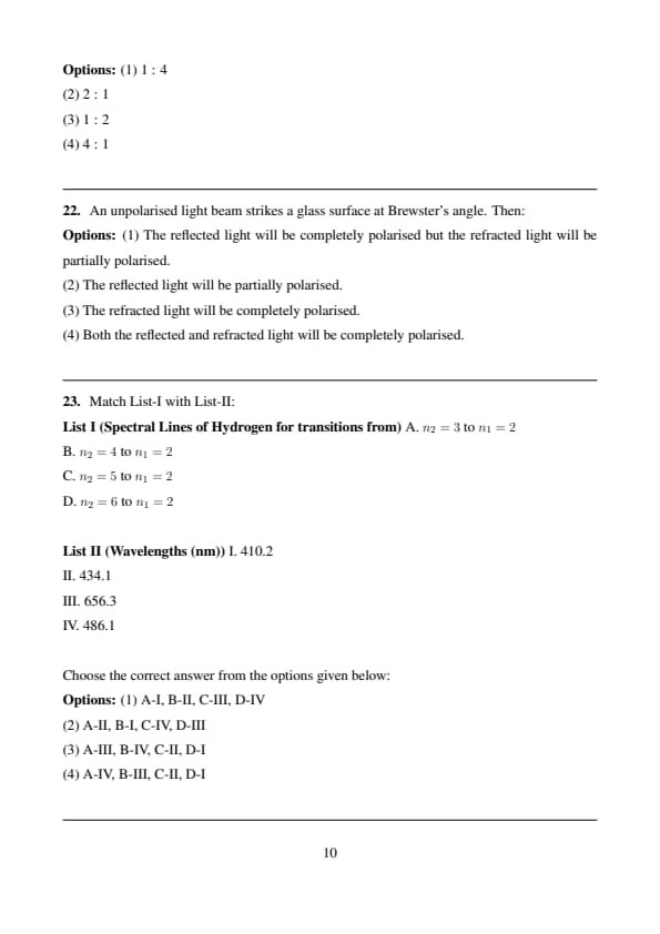 An unpolarised light beam strikes a glass surface at Brewster’s angle. Then:
