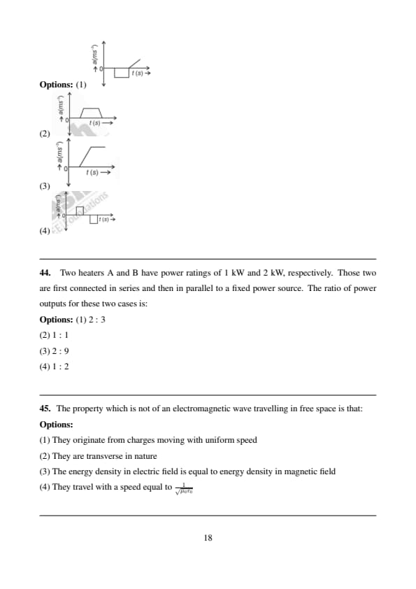 Two heaters A and B have power ratings of 1 kW and 2 kW, respectively. Those two are first connected in series and then in parallel to a fixed power source. The ratio of power outputs for these two cases is: