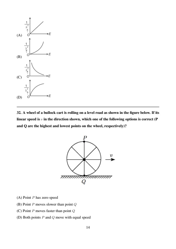 The graph which shows the variation of \( \frac{1}{\lambda^2} \) and its kinetic energy, \( E \) (where \( \lambda \) is de Broglie wavelength of a free particle):