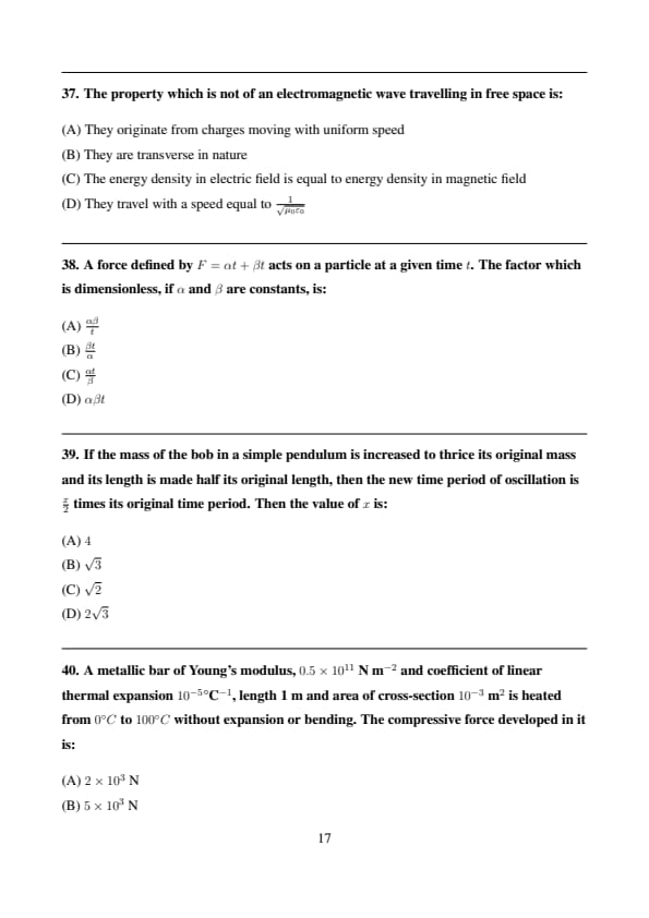 A force defined by \( F = \alpha t + \beta t \) acts on a particle at a given time \( t \). The factor which is dimensionless, if \( \alpha \) and \( \beta \) are constants, is: