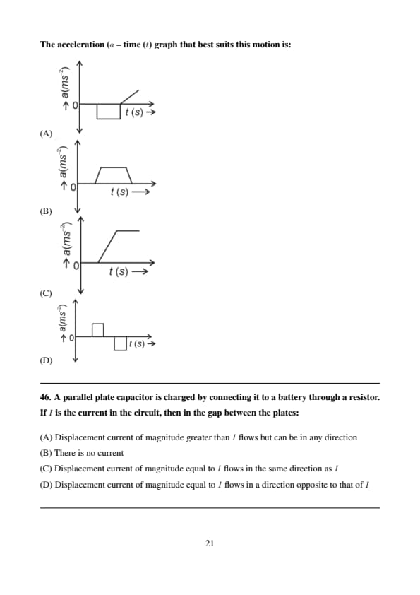 The acceleration (\( a \) – time (\( t \)) graph that best suits this motion is: