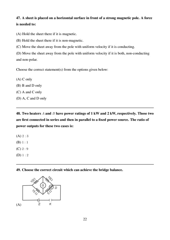 A sheet is placed on a horizontal surface in front of a strong magnetic pole. A force is needed to: