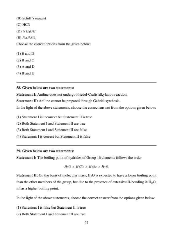 In the light of the above statements, choose the most appropriate answer from the options given below: