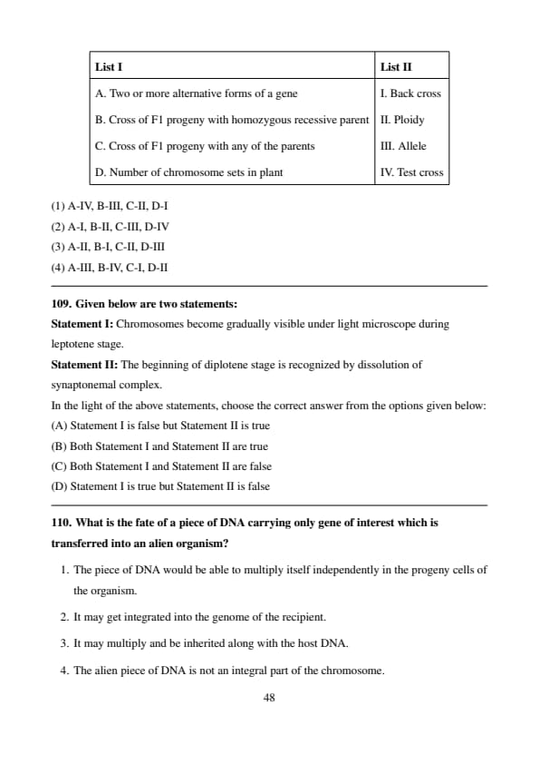 Statement I: Gause's competitive exclusion principle states that two closely related species competing for different resources cannot exist indefinitely.