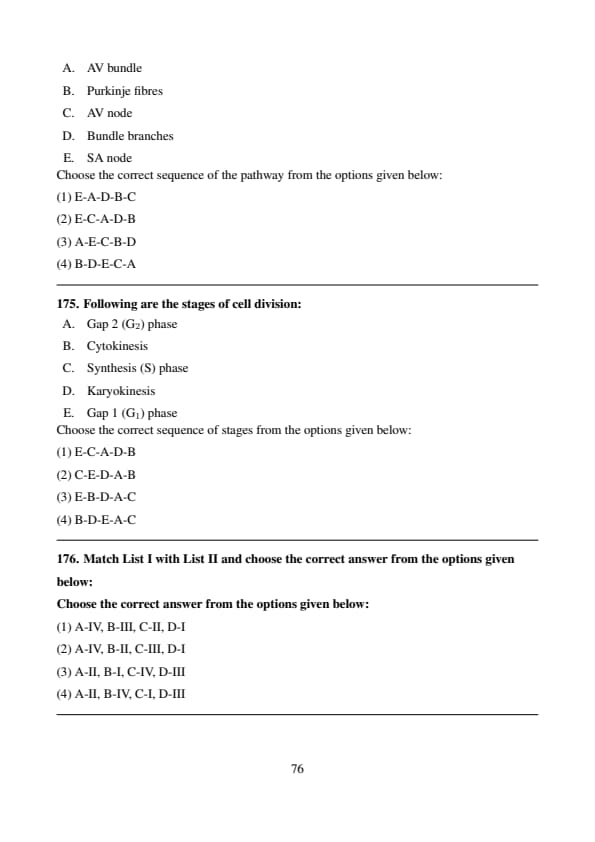 Following are the stages of the pathway for conduction of an action potential through the heart: