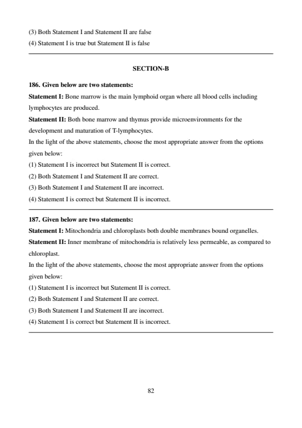Statement II: Inner membrane of mitochondria is relatively less permeable, as compared to chloroplast.