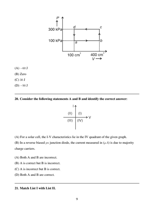 (A) For a solar cell, the I-V characteristics lie in the IV quadrant of the given graph.